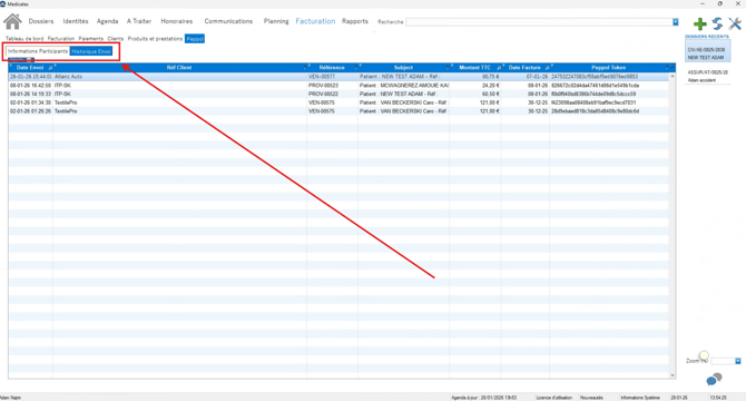 Dans ce cas, contactez le support en indiquant votre cabinet, votre utilisateur Medicalex et précisez que l’onglet Peppol n’est pas visible dans Facturation.