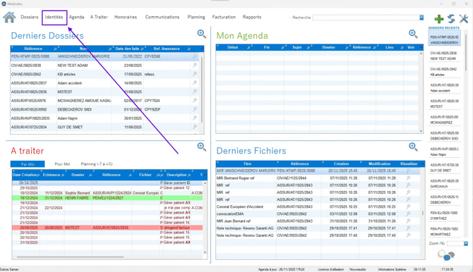Ouvrez Medicalex, puis cliquez sur l’onglet Identités.