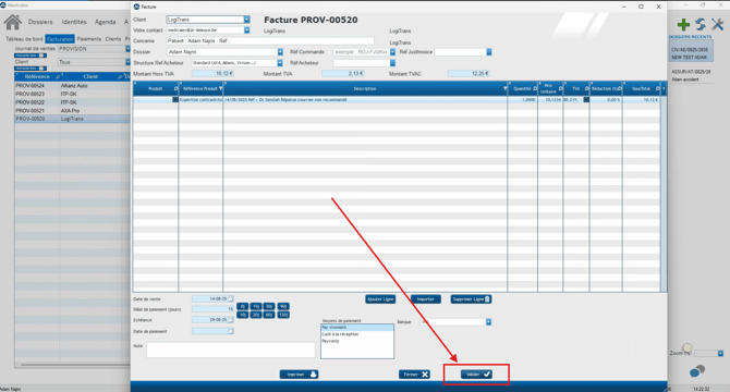 Étape 2 : Une fois la facture ouverte et vérifiée, cliquez simplement sur Valider.