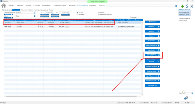 Medicalex intervient ensuite pour transmettre la facture électronique sur le réseau Peppol avec les références attendues.
