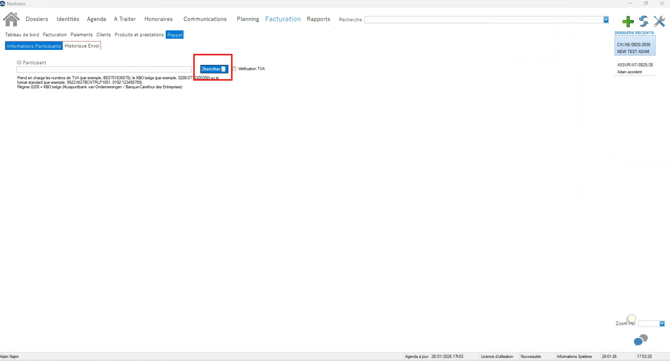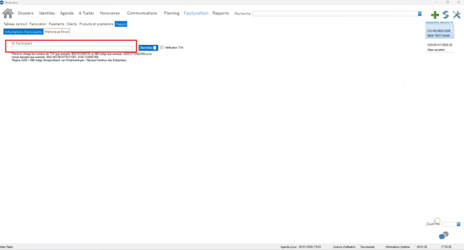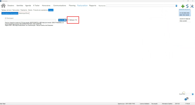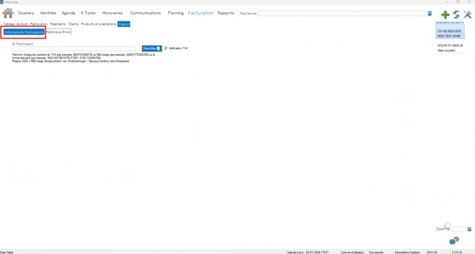Étape 3 : Accédez à la section Informations Participants. C’est dans cette section que vous trouverez l’option Check TVA et VIES.