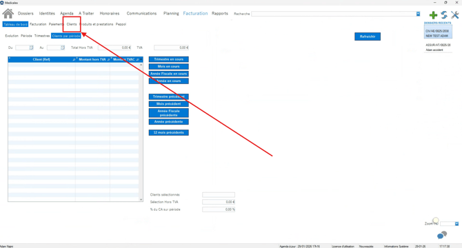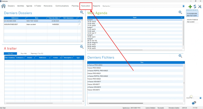 Étape 1 : Cliquez sur Facturation dans le menu principal de Medicalex.