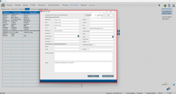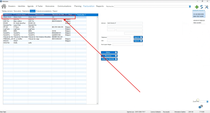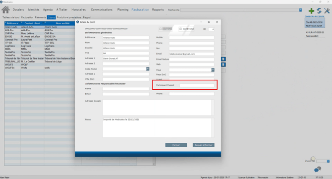 Dans la majorité des cas, Medicalex identifie automatiquement l’adresse Peppol d’un client via son numéro de TVA. Dans certaines situations spécifiques, il est toutefois nécessaire de forcer manuellement un identifiant Peppol pour garantir que la facture arrive au bon service.