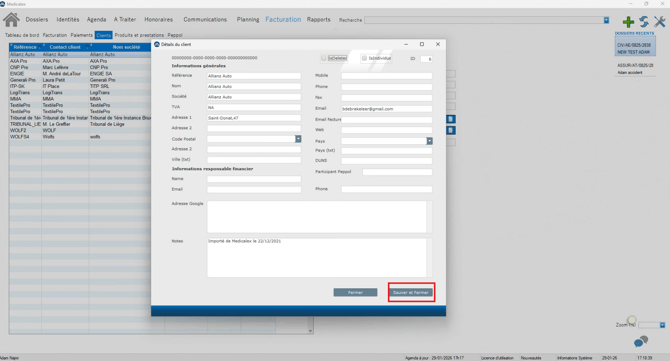Étape 5 : Enregistrez la fiche client pour appliquer la modification.