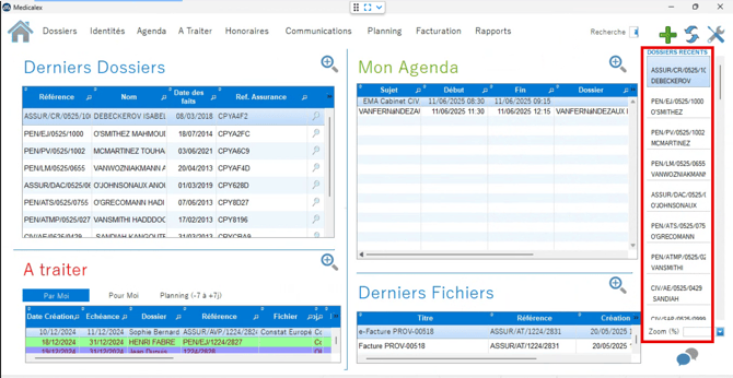 Elle permet de retrouver facilement un dossier ouvert quelques minutes plus tôt, sans devoir effectuer de recherche. C’est un véritable gain de temps pour les utilisateurs actifs sur plusieurs dossiers dans la journée.
